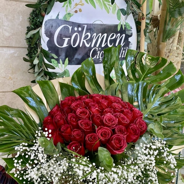 Ürün Kodu: GC20951 Adet Kırmızı Güllerden Cipsolu ve Yeşillikli Buket