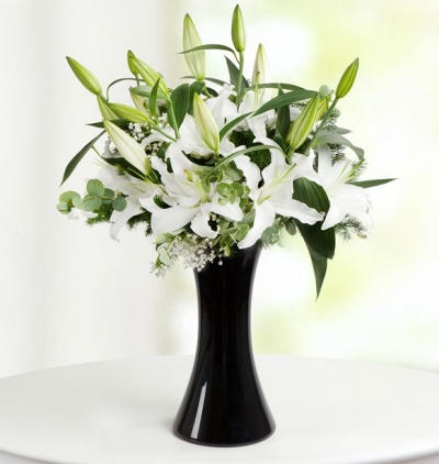 Ürün Kodu: GC63Bembeyaz ve çok özel... Siyah cam vazoda yeşilliklerle süslenmiş beyaz lilyumlar ile hazırlanmış Zarif Kuğu çiçek aranjmanı ile sevdiklerinize zarif bir jest yapın.